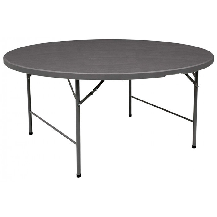 Складной круглый стол Table AKS тип 10 диаметром 152 см и высотой 74 см выдерживает до 150 кг и вмещает 8 человек. Столешница из HDPE-пластика, металлическое основание — идеально для дачи, кемпинга или мероприятий.